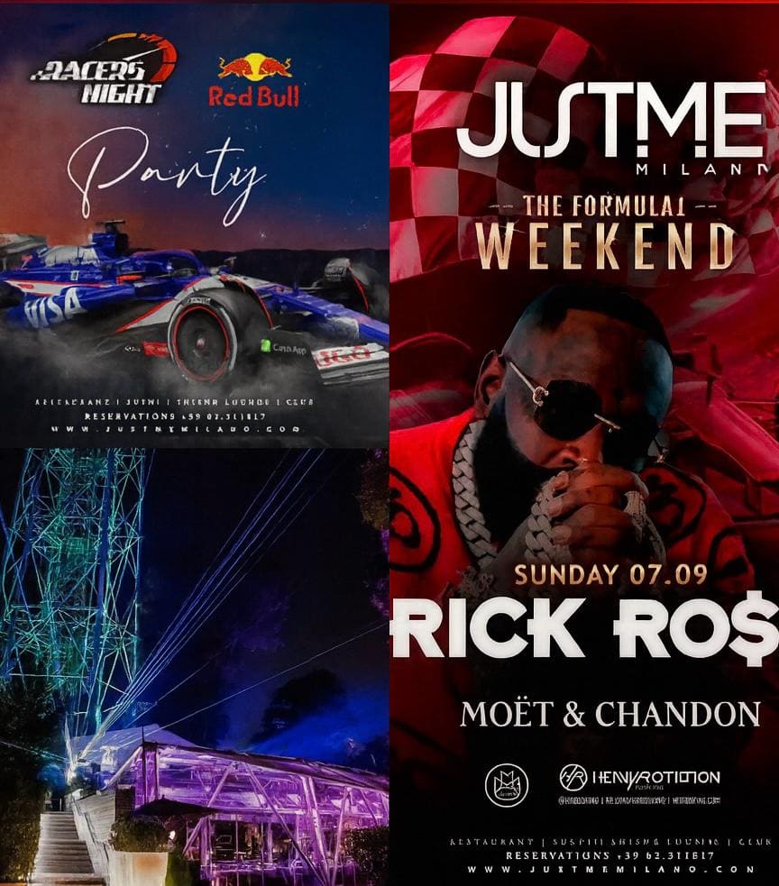 In occasione del GP di Monza 2025, la settimana della Formula 1 con ogni anno ci regala party da non perdere, questa volta avremo al JustMe Rick Ross, attore e rapper americano !