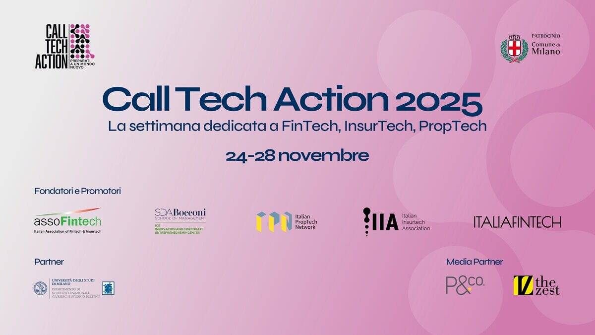 Tutto pronto per la terza edizione della Call Tech Action, la kermesse dedicata a innovazione, formazione e lavoro nei settori del Fintech, Insurtech e Proptech. L’evento, totalmente gratuito, si terrà dal 24 al 28 novembre 2025 a Milano, in varie location, e racconterà come la tecnologia, in particolare l’intelligenza artificiale generativa, stia ridefinendo il futuro della finanza, delle assicurazioni e del mercato immobiliare.