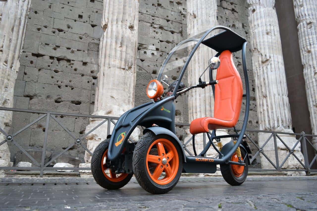 Gli Scuter infatti sono veicoli sviluppati apposta per la mobilità urbana dal team della startp-up italiana: sono ciclomotori elettrici a tre ruote dotati di una seduta completa, di cintura di sicurezza e di cella protettiva. Il loro vantaggio? Al netto delle dimensioni compatte e del peso leggero, si guidano senza casco. In sostanza, una versione 2.0 dell’idea che BMW ebbe qualche anno fa col C1.