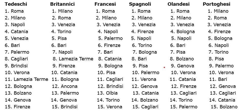 Per quanto riguarda i turisti italiani, Milano è la 18esima città più desiderata al mondo per trascorrere la fine dell’anno 2025. Inoltre, le capitali e le grandi città dei principali paesi europei come Parigi (1), Londra (2), Vienna (3), Praga (4), Barcellona (5), Amsterdam (6), Madrid (9), Budapest (12), Valencia (17), Lisbona (19), Siviglia (20), Bruxelles (24), Edimburgo (25), Bucarest (26), Malaga (27), Copenaghen (28) e Berlino (29), insieme ad altre destinazioni italiane come Napoli (8), Palermo (13), Roma (16), Catania (21) e Bari (30) che occupano le migliori posizioni della lista di ricerca mondiale.