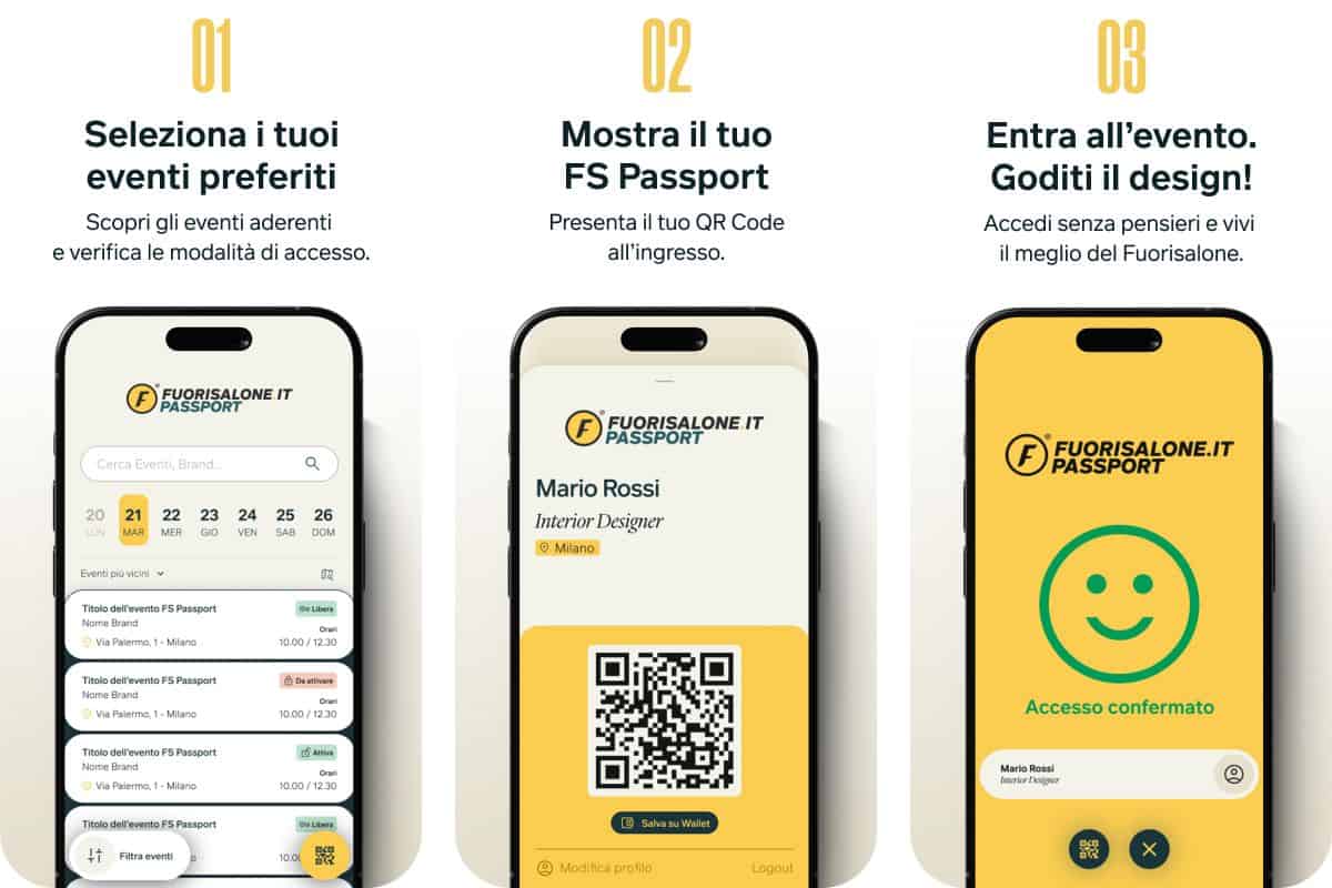 Il Fuorisalone Passport nasce per semplificare tutto questo. L’obiettivo è offrire un sistema di registrazione unico, pensato per ridurre tempi di attesa e passaggi ripetitivi. Una sola iscrizione, valida per più eventi aderenti, invece di ricominciare ogni volta da capo.